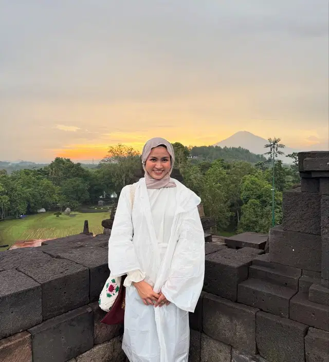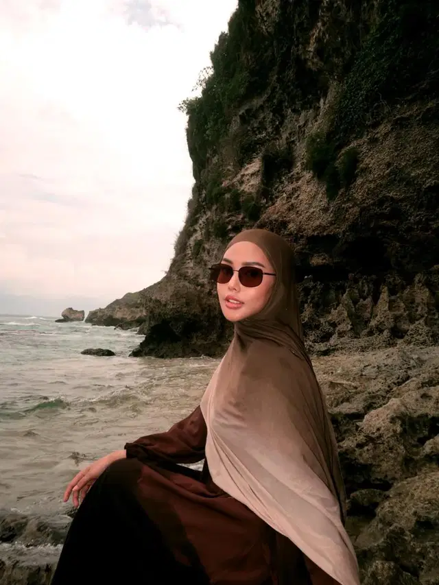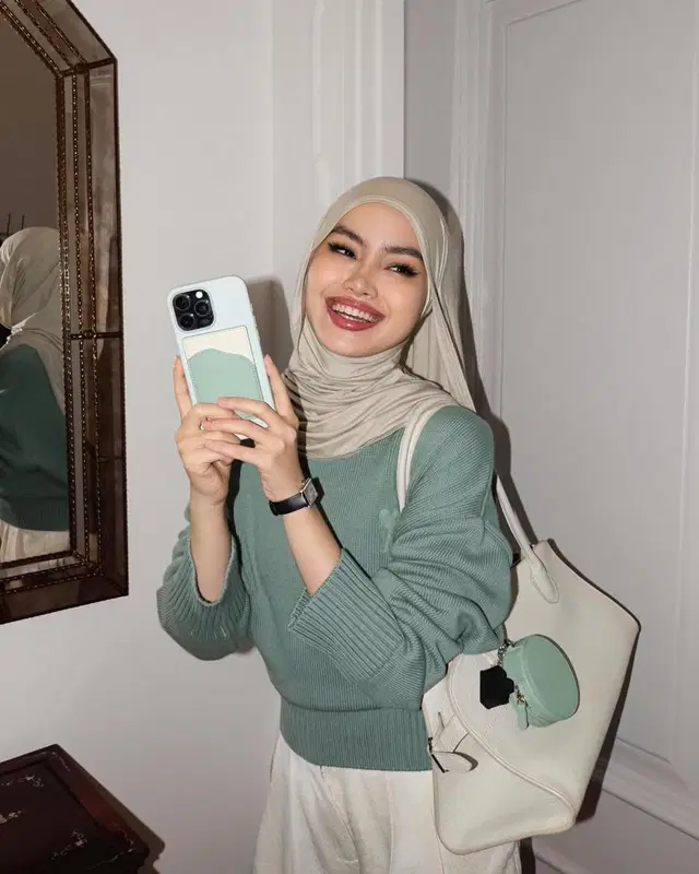 Nabila Taqiyyah tampil memukau dengan balutan pashmina berbahan silk atau sutra yang dikenal punya efek kilau (shimmer) elegan. Efek kilau atau shimmer dari kain sutra ini bisa memberikan sentuhan mewah, cocok untuk suasana Lebaran yang spesial.