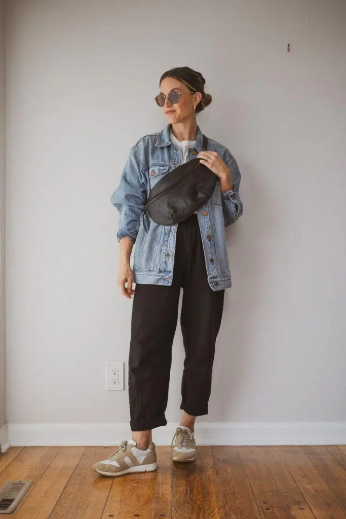 Banyak orang yang memakai denim jeans untuk berbagai keperluan, termasuk untuk jalan-jalan. Denim jacket tersebut akan cocok dengan bawahan apa saja termasuk cargo pants hitam. Setelah itu, kenakan aksesori andalanmu seperti sling bag dan sneakers.