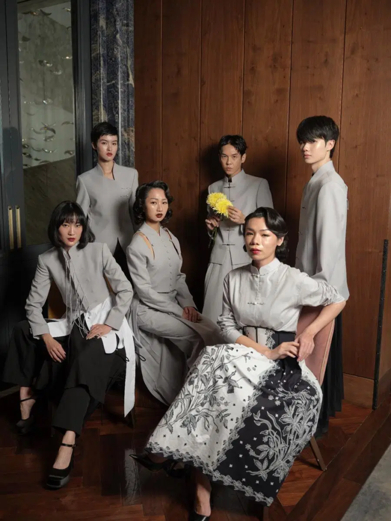 Nuansa peranakan modern menjadi benang merah koleksi ini. Detail seperti batik pesisir, kerah Shanghai, dan elemen kancing khas memberikan identitas kuat tanpa terasa kostumatik, menjadikan koleksi ini mudah diintegrasikan ke wardrobe modern.