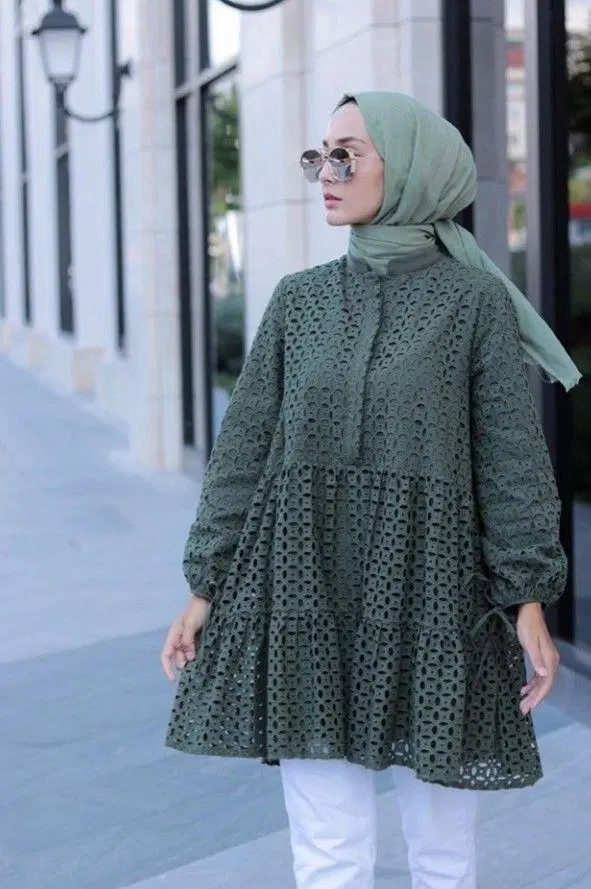 Warna jilbab yang cocok dengan baju hijau botol selanjutnya adalah hijau mint. Perpaduan antara kedua warna hijau ini akan memberikan kesan kasual dan santai. Seperti outfit di atas, kamu bisa mengenakan tunik warna hijau botol dengan celana putih. Lalu, kenakan jilbab hijau mint sebagai pelengkapnya. Perpaduan outfit tersebut bisa kamu pakai untuk berjalan-jalan atau berbelanja bersama kerabat.