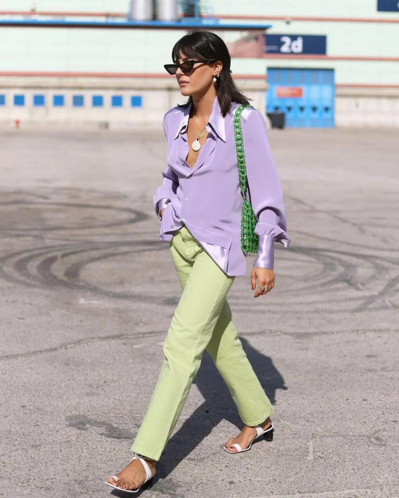 OOTD hijau mint cocok untuk kamu yang ingin tampilan fresh dan playful. Misalnya, kamu bisa mengkombinasikan celana warna mint dengan atasan warna lavender yang kontras tapi tetap kalem.